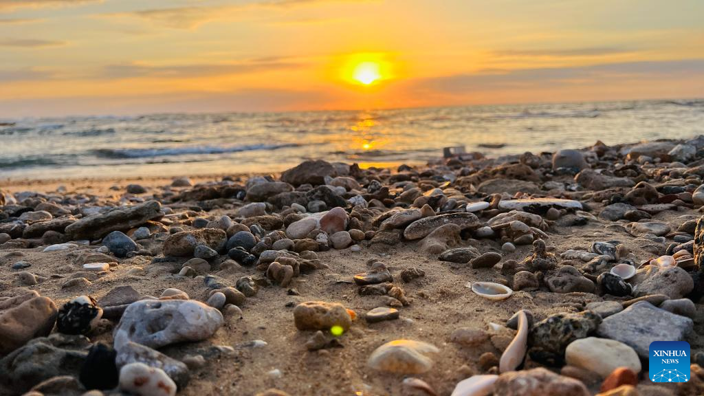 Photo taken on Oct. 7, 2022 shows a sunset view over the Mediterranean Sea in Tel Aviv, Israel. (Photo by Muammar Awad/Xinhua)