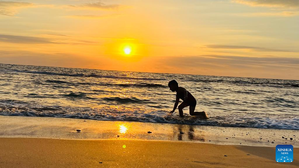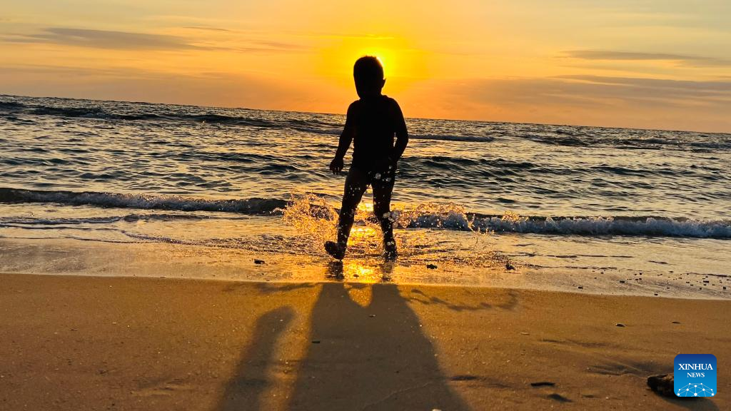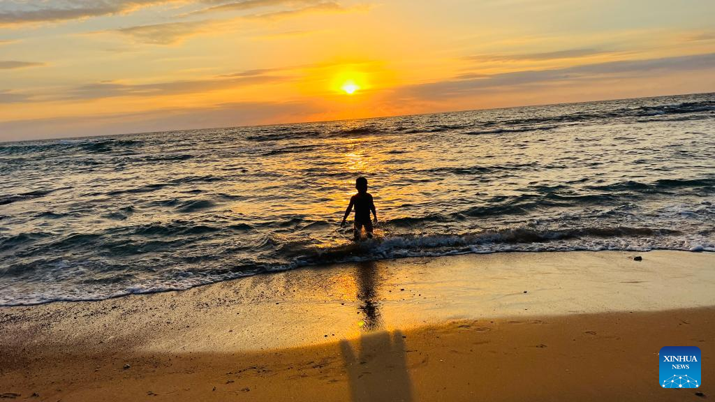 A boy enjoys the sunset over the Mediterranean Sea in Tel Aviv, Israel, on Oct. 7, 2022. (Photo by Muammar Awad/Xinhua)