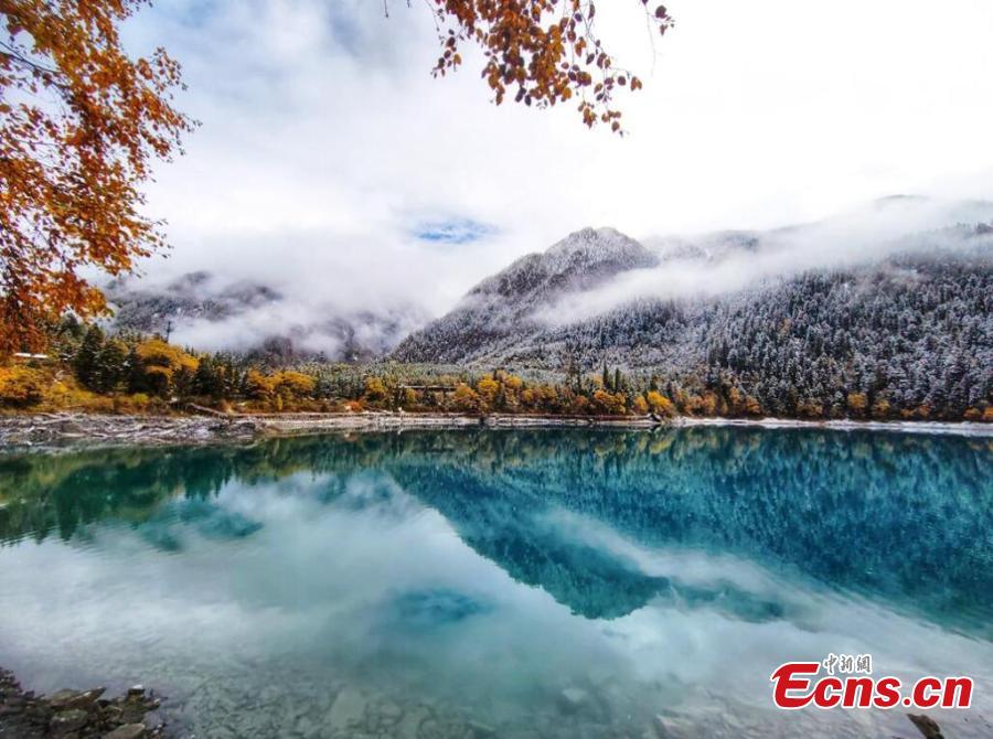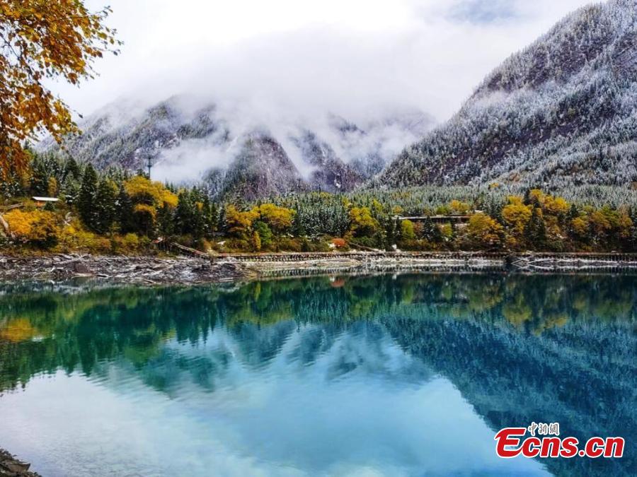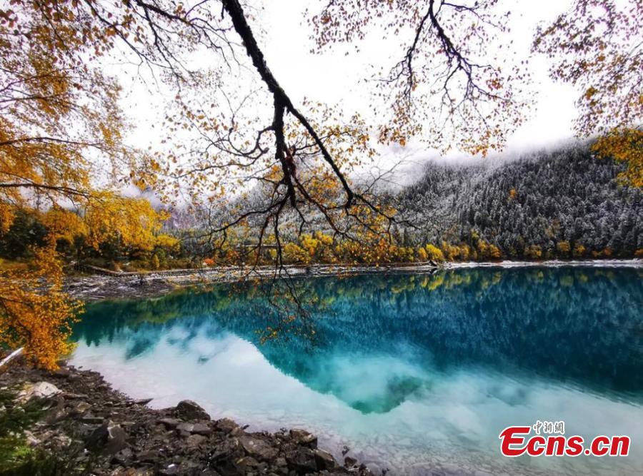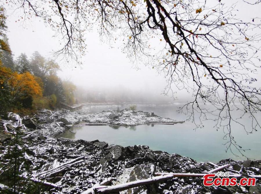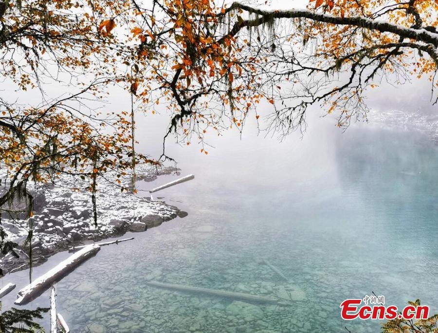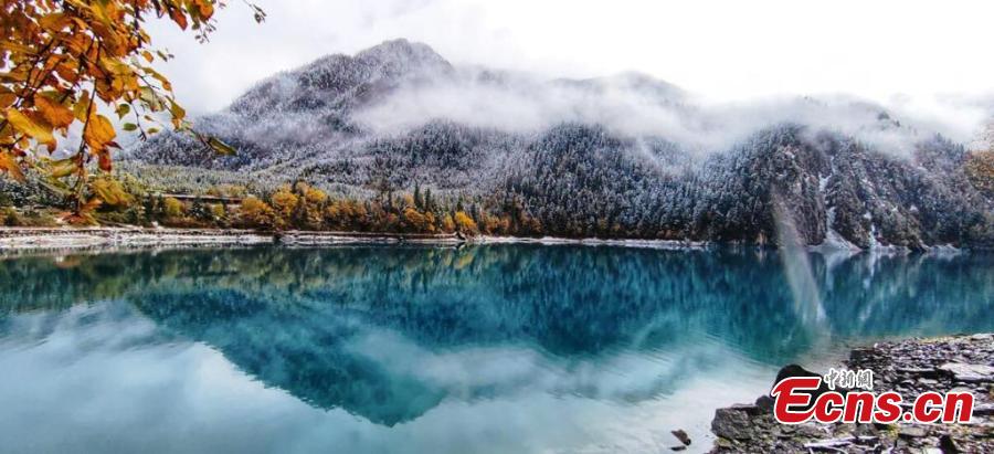 Snow blankets Jiuzhaigou scenic area, turning the UNESCO World Heritage site to a fairy land in southwest China's Sichuan Province, Oct. 8, 2022. (Photo: China News Service/Liang Feng)