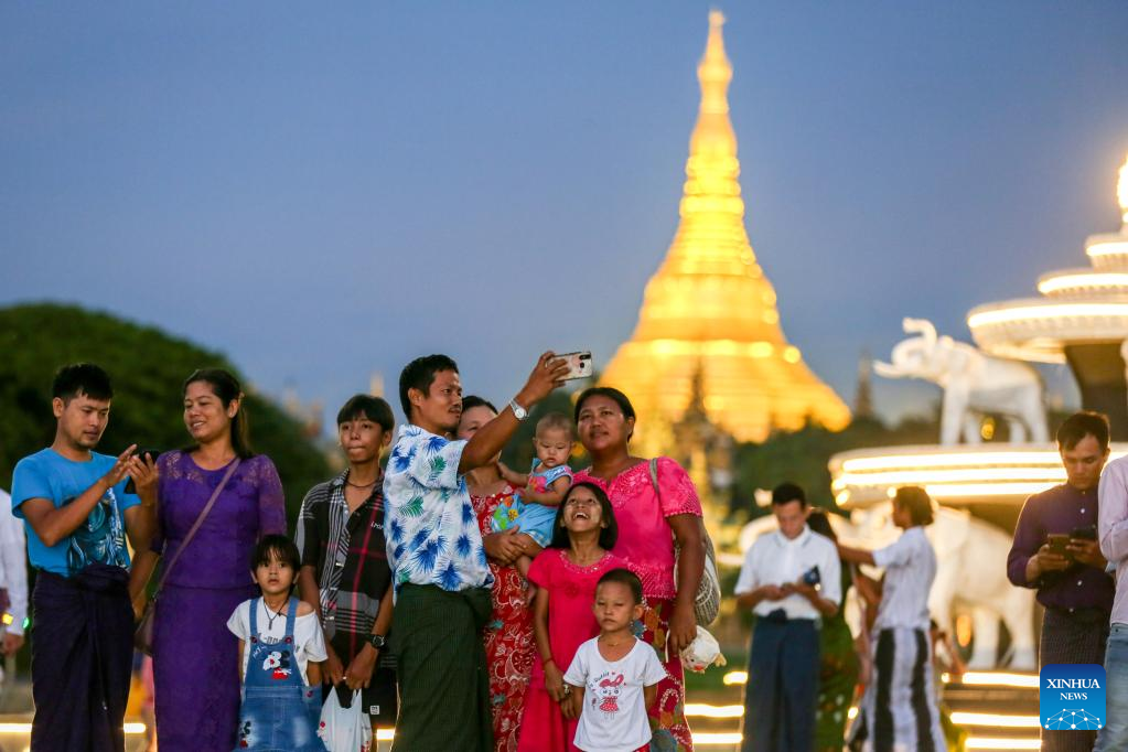 People visit a park during the Thadingyut lighting festival in Yangon, Myanmar, Oct. 9, 2022. (Photo by Myo Kyaw Soe/Xinhua)