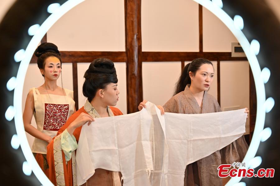 A team of post-90s artists display traditional Chinese costumes of Wei, Jin, and the Southern and Northern dynasties (220-589) in a studio in Nanning, south China's Guangxi Zhuang Autonomous Region, Oct. 9, 2022. (Photo: China News Service/Yu Jing)