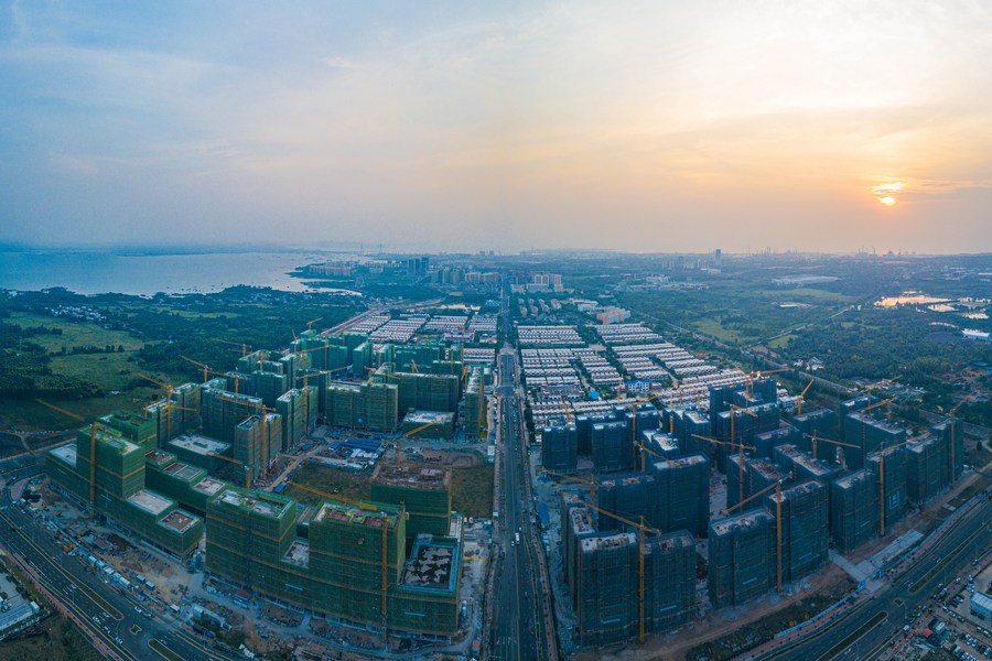 Aerial panoramic photo taken on Sept. 26, 2022 shows the eastern living area of Yangpu Economic Development Zone in south China's Hainan Province. (Xinhua/Pu Xiaoxu)