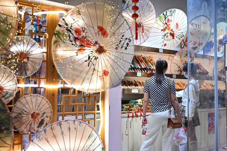 People visit Sanfangqixiang (Three Lanes and Seven Alleys), an ancient block, in Fuzhou, southeast China's Fujian Province, Oct. 6, 2022. (Xinhua/Zhou Yi)