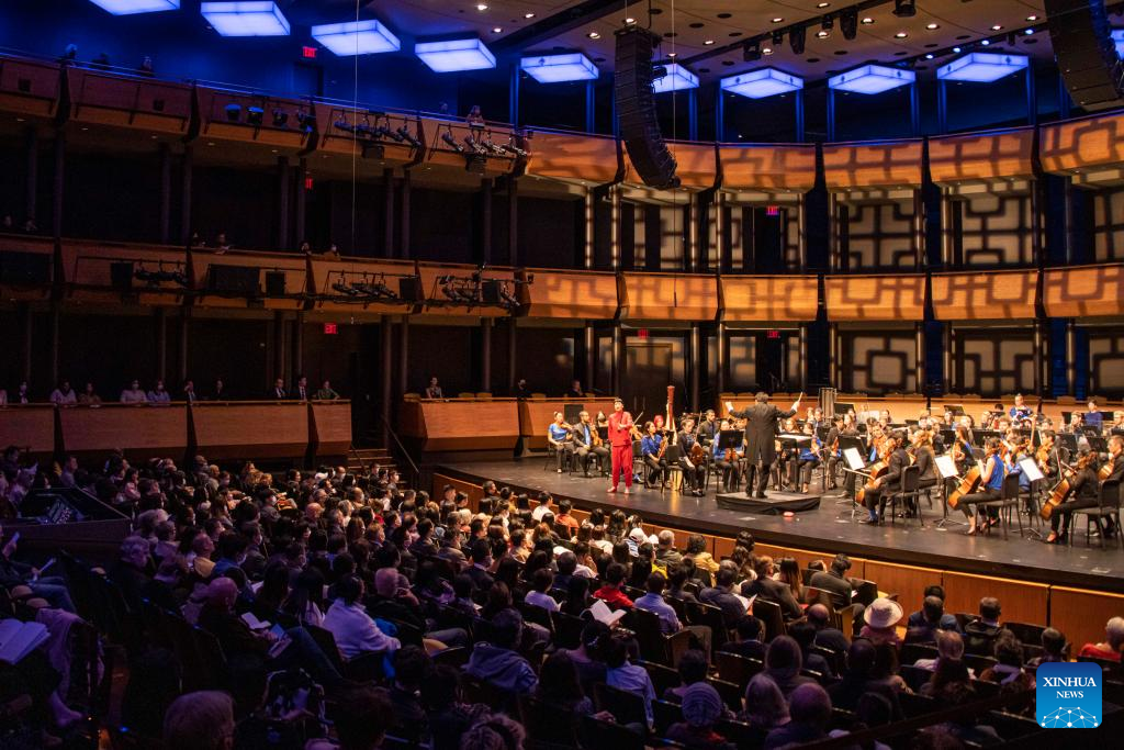Artists perform at the concert "Tales from Beijing" of China Now Music Festival at the Lincoln Center in New York, the United States, on Oct. 9, 2022. China Now Music Festival, a leading force in introducing music from China to the United States, kicked off its fifth season on Sunday at the Lincoln Center in New York City, with fusion music works that "belong to both East and West." (Photo by Winston Zhou/Xinhua)