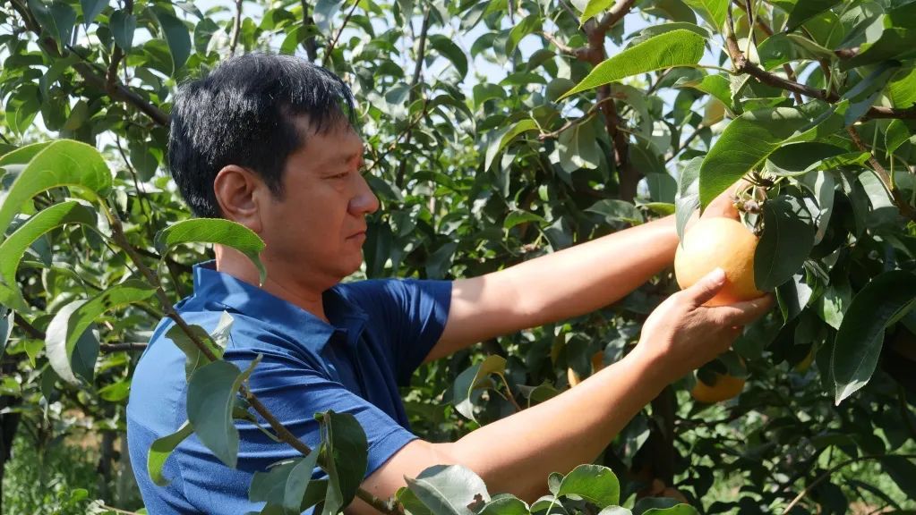 Huo Linfeng, born into a family that has been planting pears for generations, is the head of a planting cooperative in the village, which is known for its pear industry. The output value of pears in the village exceeds 100 million yuan (about $14.1 million). The village also boasts pear trees with a history of more than 300 years, and many varieties of pears have been planted there.