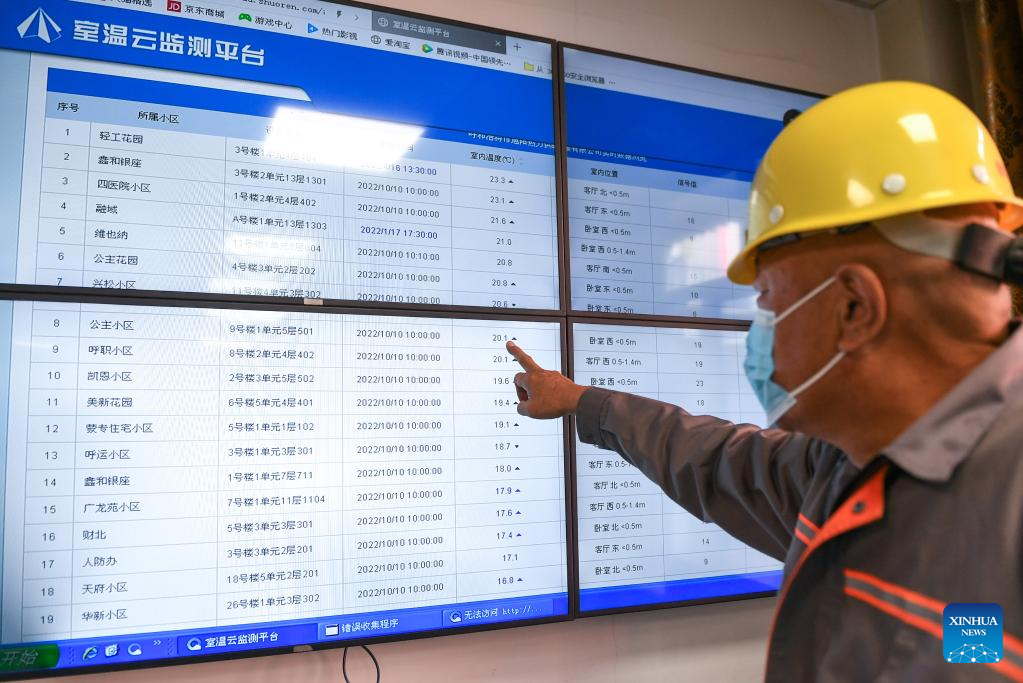 A worker monitors the operation of heating system at a heating company in Hohhot, north China's Inner Mongolia Autonomous Region, Oct. 10, 2022. Heating supply starts earlier this year as a response to deal with a sharp drop in temperature in Hohhot. (Xinhua/Bei He)