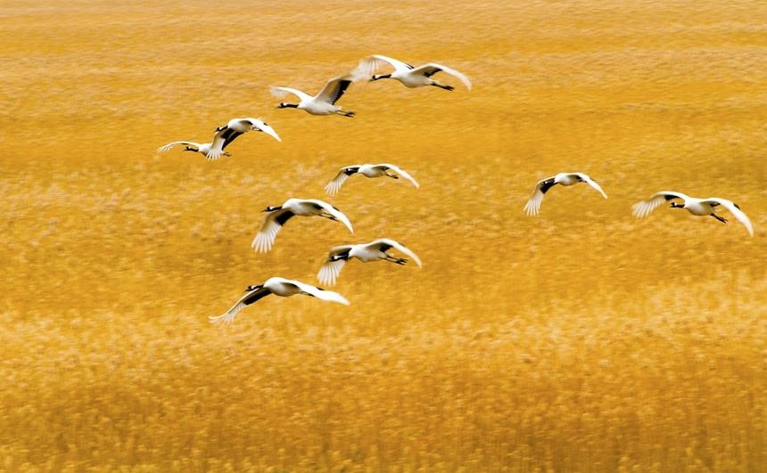 Covering an area of 210,000 hectares, Zhalong National Nature Reserve, in northeast China's Heilongjiang Province, provides an excellent habitat for rare waterfowl, including red-crowned cranes.