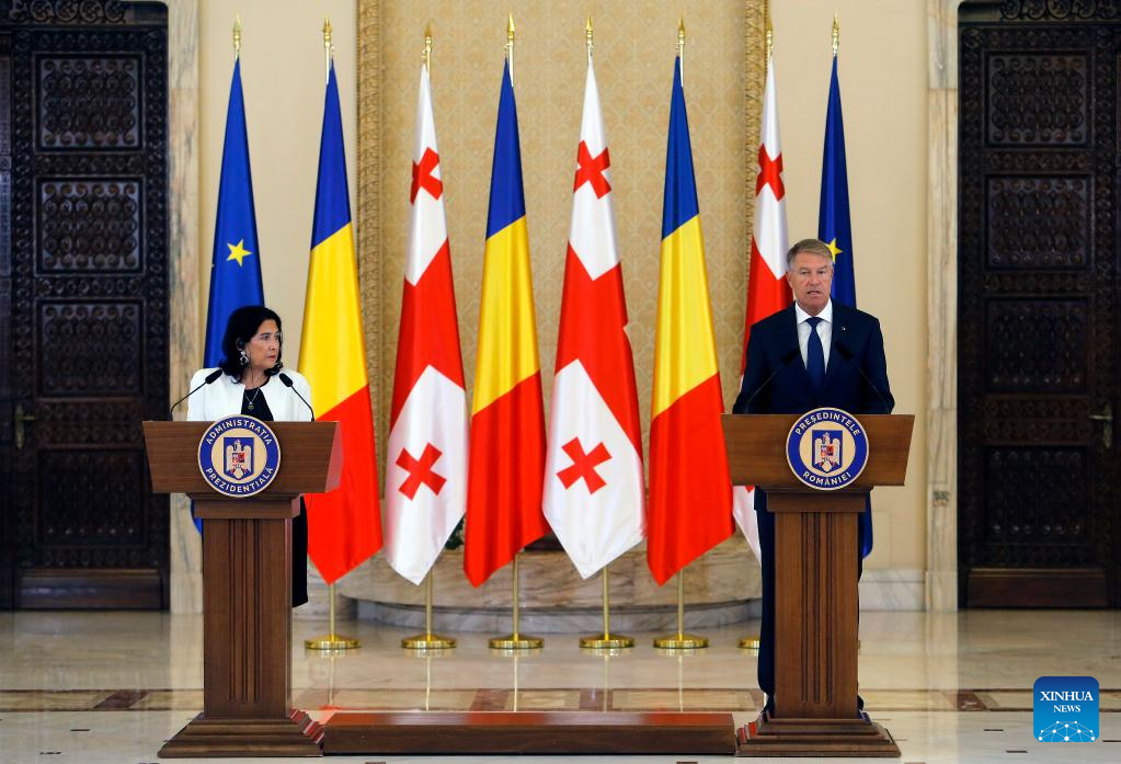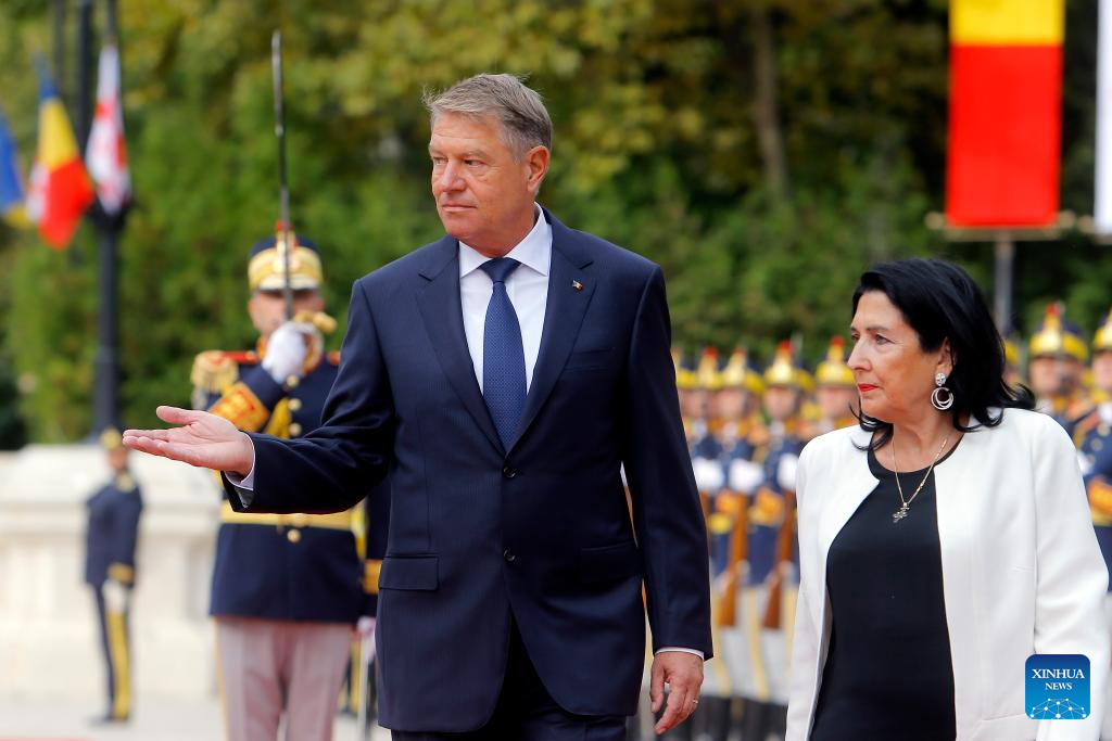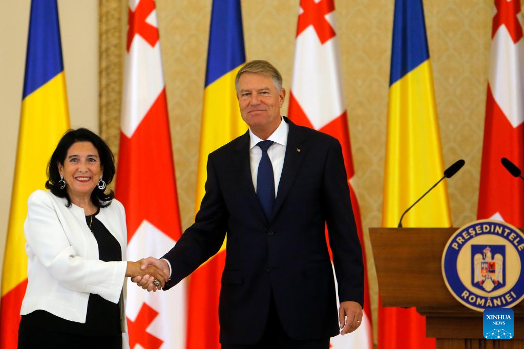 BUCHAREST, Oct. 11 (Xinhua) -- Romanian President Klaus Iohannis and his Georgian counterpart Salome Zourabichvili on Tuesday signed a joint declaration establishing a strategic partnership between the two countries.