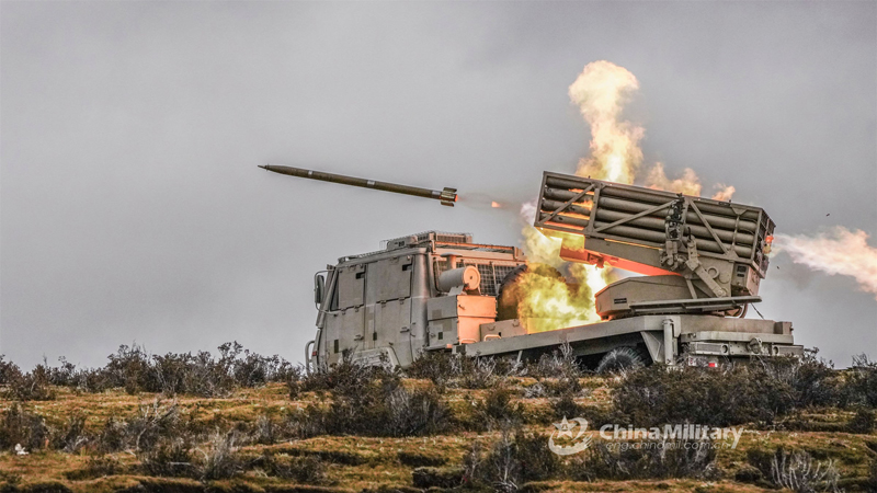 Truck-mounted multiple rocket launcher system (MRLS) attached to a brigade under the PLA 77th Group Army fires against mock targets in the live-fire assessment on September 21, 2022. (eng.chinamil.com.cn/Photo by Liu Yanhong)