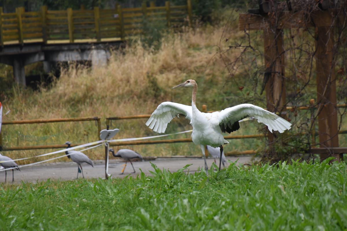 A 4-month-old red-crowned crane at Harbin Northeast Forest Zoo in Heilongjiang province. [Photo by Liu Xiaomi/For chinadaily.com.cn]