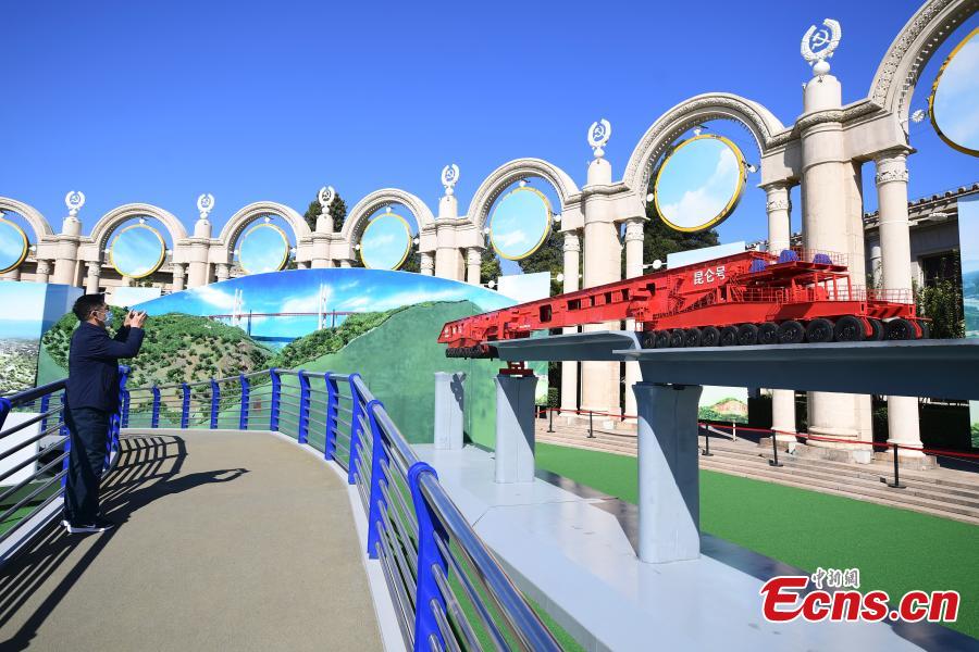 A man takes photos of an exhibit at the themed exhibition "Forging Ahead in the New Era" at the Beijing Exhibition Hall in Beijing, Oct. 11, 2022. (Photo: China News Service/Tian Yuhao)