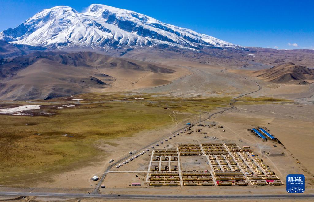 Aerial photo taken on May 17, 2021, shows a section of the Karakoram Highway and a highway in a village in Akto county, northwest China's Xinjiang Uygur Autonomous Region. (Xinhua/Hu Huhu)