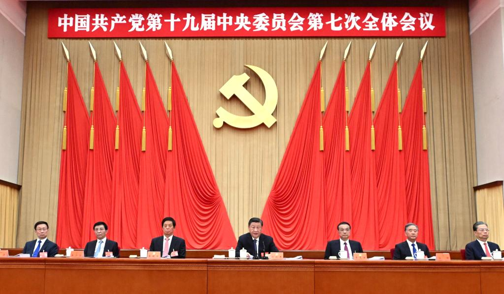 Xi Jinping, Li Keqiang, Li Zhanshu, Wang Yang, Wang Huning, Zhao Leji and Han Zheng attend the seventh plenary session of the 19th Central Committee of the Communist Party of China (CPC), in Beijing, capital of China. The plenary session was held from Oct. 9 to 12 in Beijing. (Xinhua/Xie Huanchi)