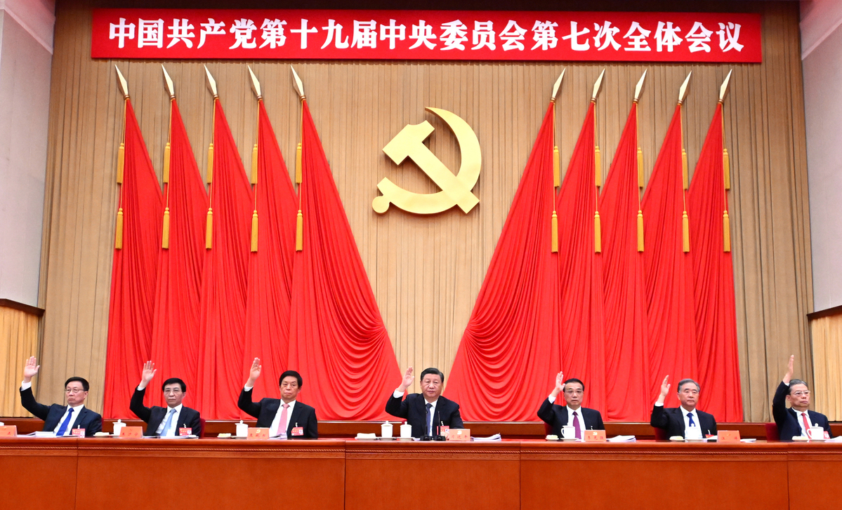 Xi Jinping, Li Keqiang, Li Zhanshu, Wang Yang, Wang Huning, Zhao Leji and Han Zheng attend the seventh plenary session of the 19th Central Committee of the Communist Party of China (CPC), in Beijing, capital of China. The plenary session was held from Oct 9 to 12 in Beijing. [Photo/Xinhua]