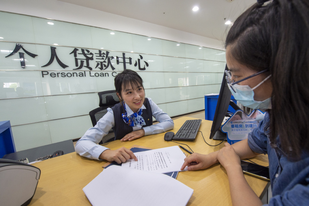A bank employee in Haian, Jiangsu province, explains loan application details to a customer. [PHOTO by XU JINGBAI/FOR CHINA DAILY]
