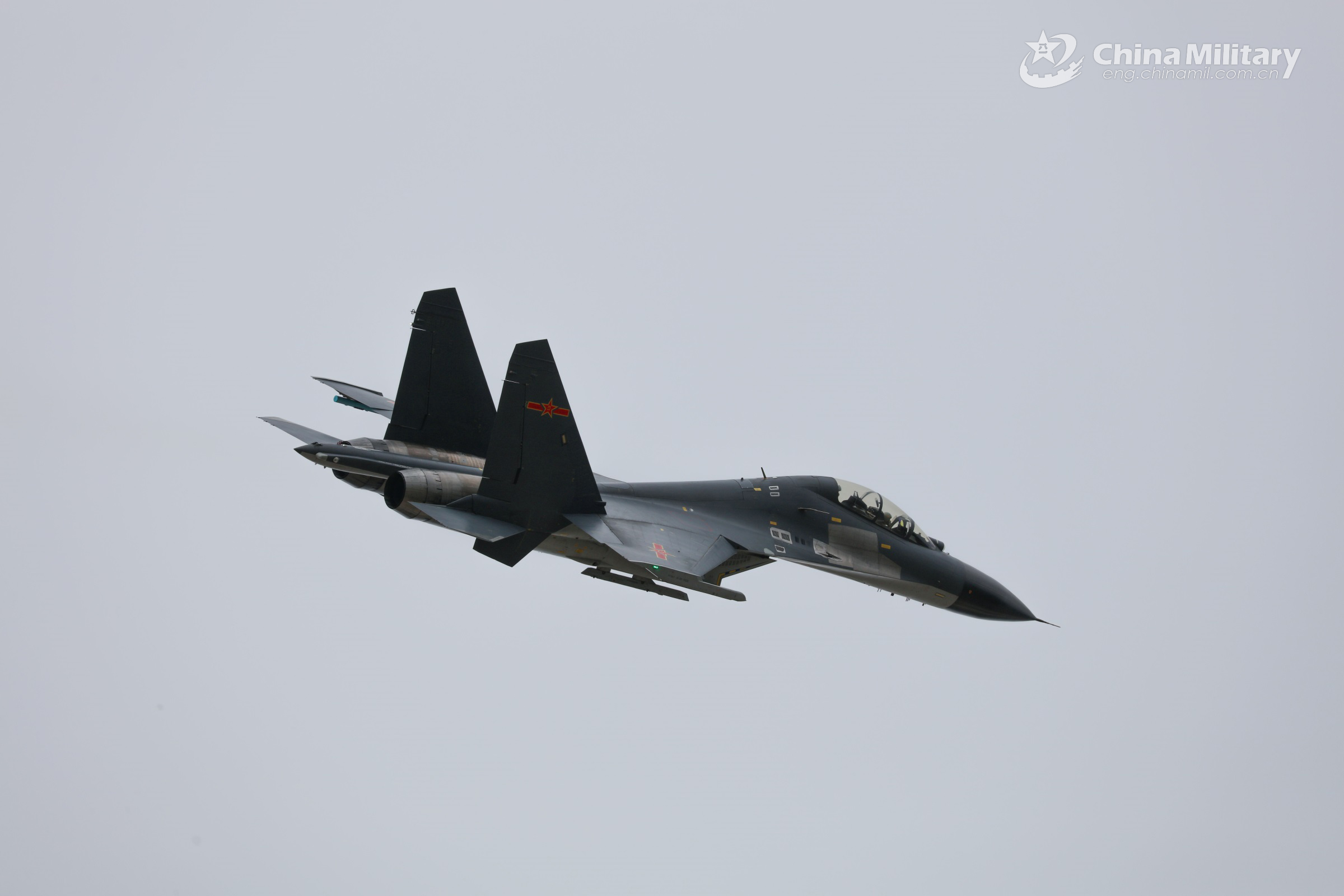 A fighter jet attached to an aviation brigade of air force under the PLA Western Theater Command soars in the sky during a flight training exercise on September 18, 2022. (eng.chinamil.com.cn/Photo by Yu Zeqi)