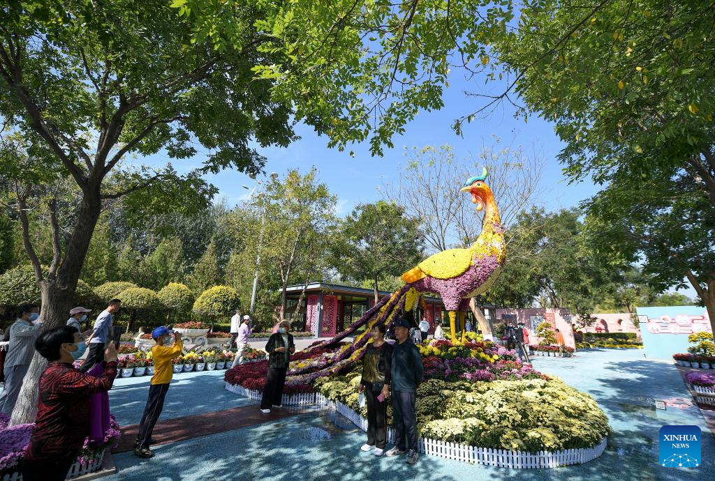 Citizens take photos at a flower expo park in Yinchuan, northwest China's Ningxia Hui Autonomous Region, Oct. 1, 2022. Saturday marks the first day of China's week-long National Day holiday. (Xinhua/Feng Kaihua)