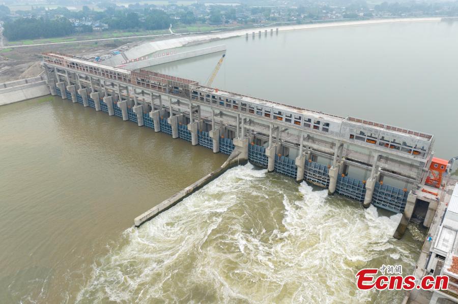 Photo taken on Oct. 12, 2022 shows the 17-hole dam of the Huduxi Navigation and Hydropower Hub on Minjiang River in Qingshen, southwest China's Sichuan Province. (Photo: China News Service/Liu Zhongjun)