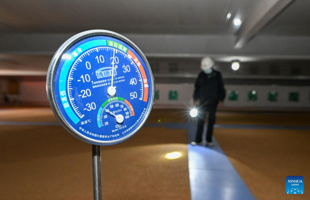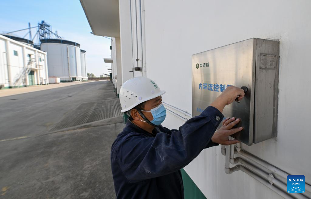 A staff worker adjusts temperature of the warehouse at Dongli branch of Central Grain Reserve Tianjin Dongli Direct Warehouse Co., Ltd. in north China's Tianjin, Oct. 12, 2022. Affiliated to China Grain Reserves Group (Sinograin), Central Grain Reserve Tianjin Dongli Direct Warehouse Co., Ltd. mainly stores wheat and corn with a total storage capacity of about 500,000 tons, which is the largest central grain reserve depot in Tianjin.