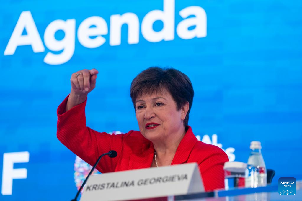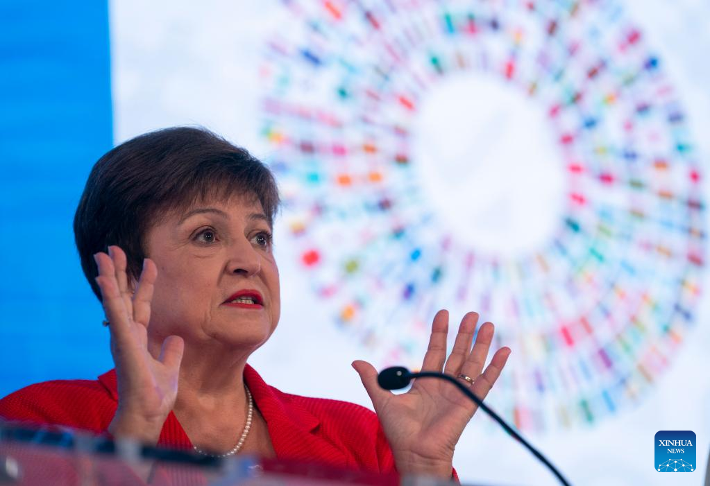 IMF Managing Director Kristalina Georgieva speaks at a press conference in Washington, D.C., the United States, on Oct. 13, 2022. Emerging markets and developing countries are being hit by a stronger dollar, high borrowing costs, and capital outflows -- a triple blow particularly heavy for countries that are under a high level of debt, the chief of the International Monetary Fund (IMF) said Thursday. (Xinhua/Liu Jie)