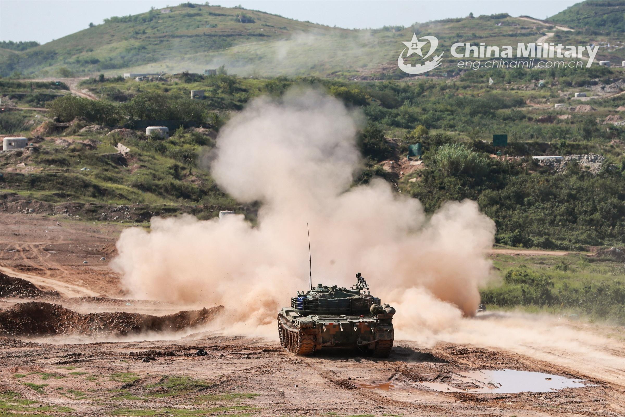 A main battle tank attached to a brigade under the PLA 72nd Group Army spits fire down range at mock ground targets during a live-fire test on September 19, 2022. (eng.chinamil.com.cn/Photon by Liu Zihua)