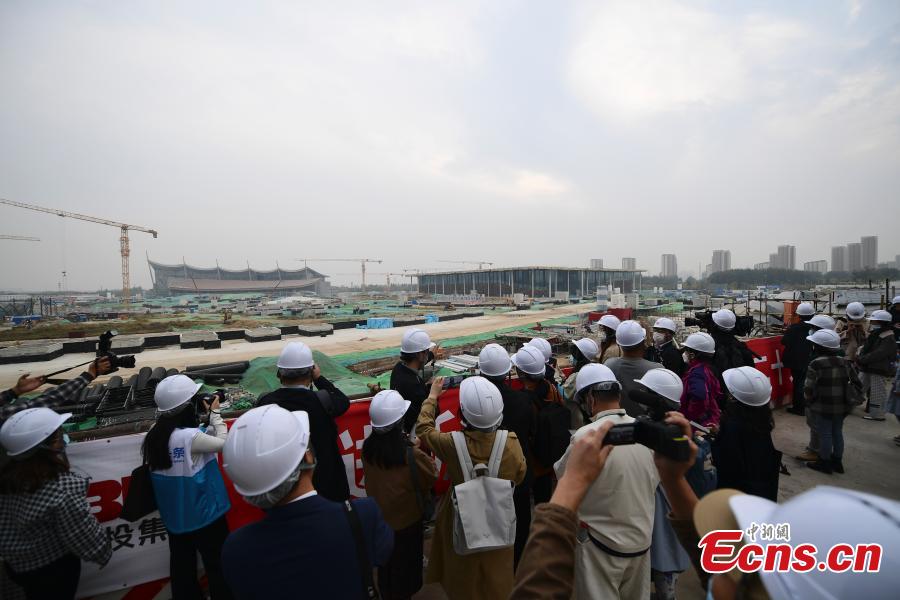 Chinese and foreign journalists visit the construction site of the main museum and library in Beijing sub-center, Oct. 13, 2022. (Photo: China News Service/Tian Yuhao)