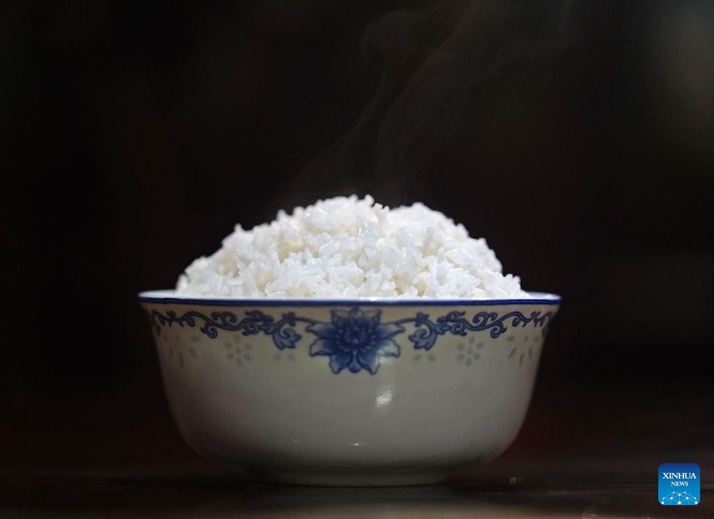 Photo taken on Oct. 13, 2022 shows a bowl of steamed rice at the home of a local resident in Nanchang City, east China's Jiangxi Province. World Food Day is an international day celebrated worldwide every year on Oct. 16. Each grain of rice served on human's dining-table has gone through a series of operations from the paddy fields to processing plants. (Xinhua/Wan Xiang)