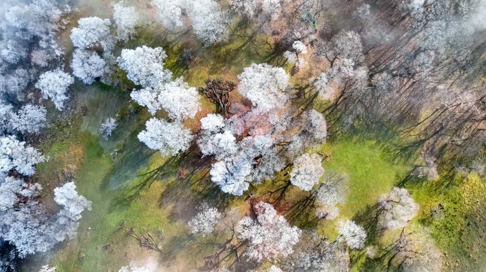 With the passing of a cold front, temperatures in the Longwan National Nature Reserve in Huinan county, Jilin province, began to slump on Monday, bringing frost and creating the natural beauty of soft rime on Dadingzi Mountain. [Photo by Quanjing Atao/For chinadaily.com.cn]
