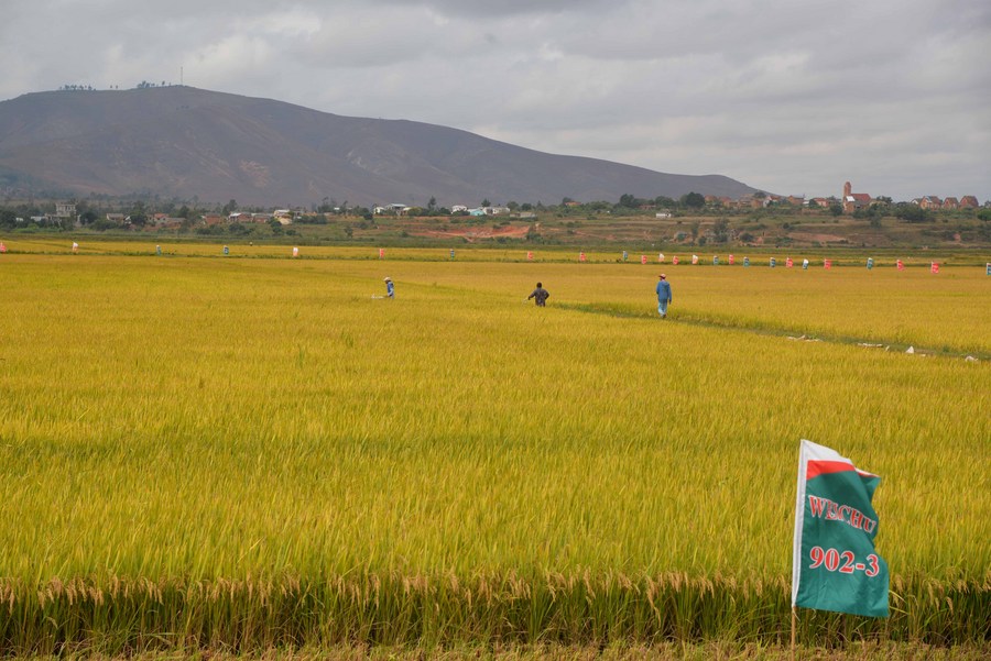 Photo taken on May 6, 2022 shows the demonstration fields of hybrid rice varieties in Mahitsy, a town northwest of Antananarivo, Madagascar. (Photo by Sitraka Rajaonarison/Xinhua)