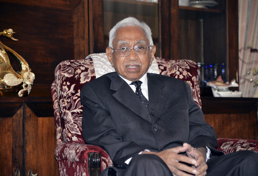 Former Malagasy Prime Minister Norbert Ratsirahonana speaks during an interview with Xinhua in Antananarivo, Madagascar, Oct. 7, 2022.(Photo by Sitraka Rajaonarison/Xinhua)