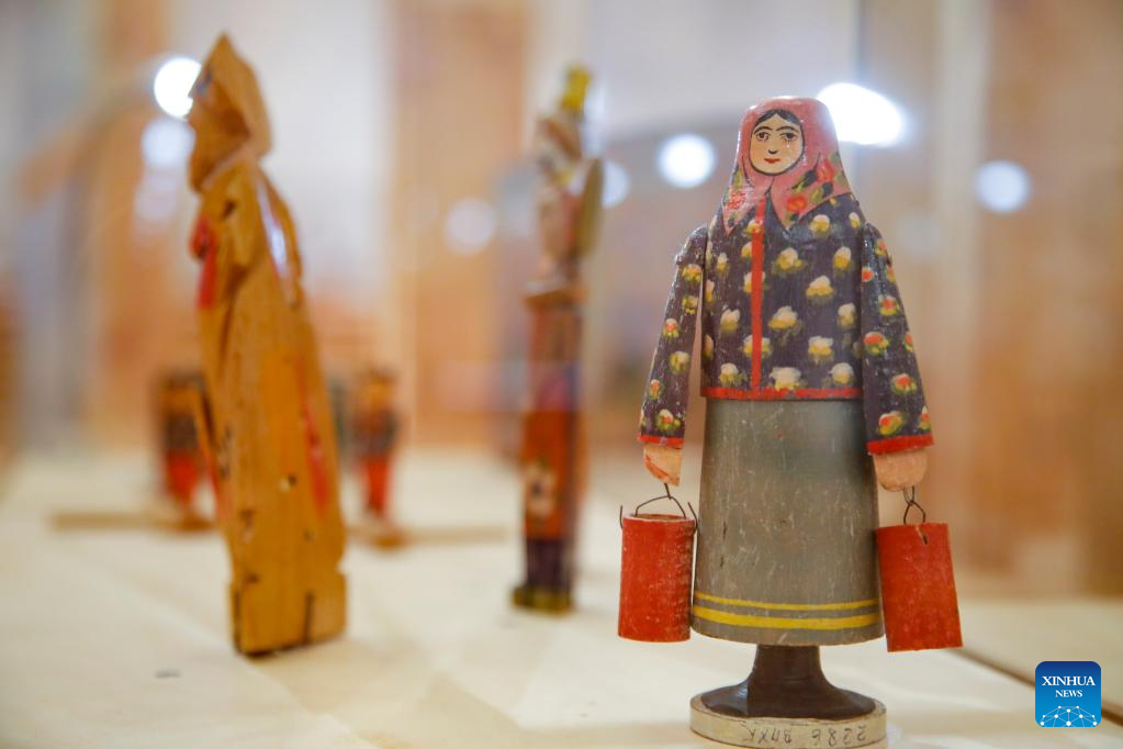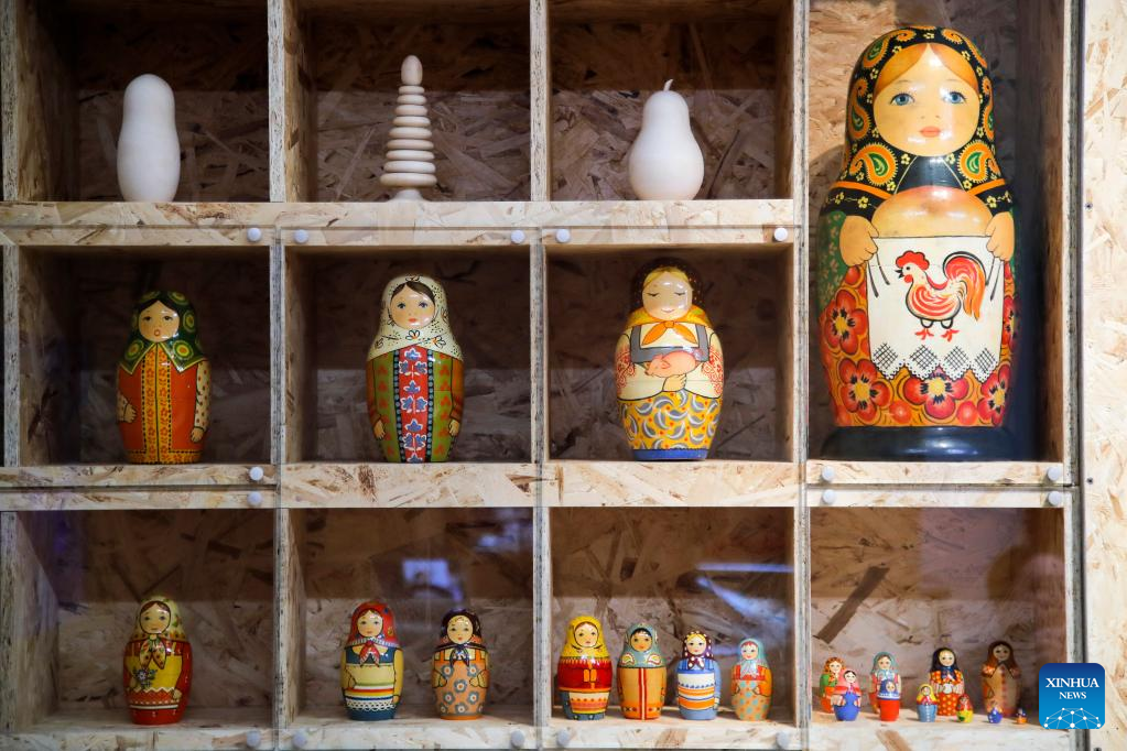 Photo taken on Oct. 15, 2022 shows traditional Russian toys at a wooden toys exhibition in Moscow, Russia. (Photo by Alexander Zemlianichenko Jr/Xinhua)