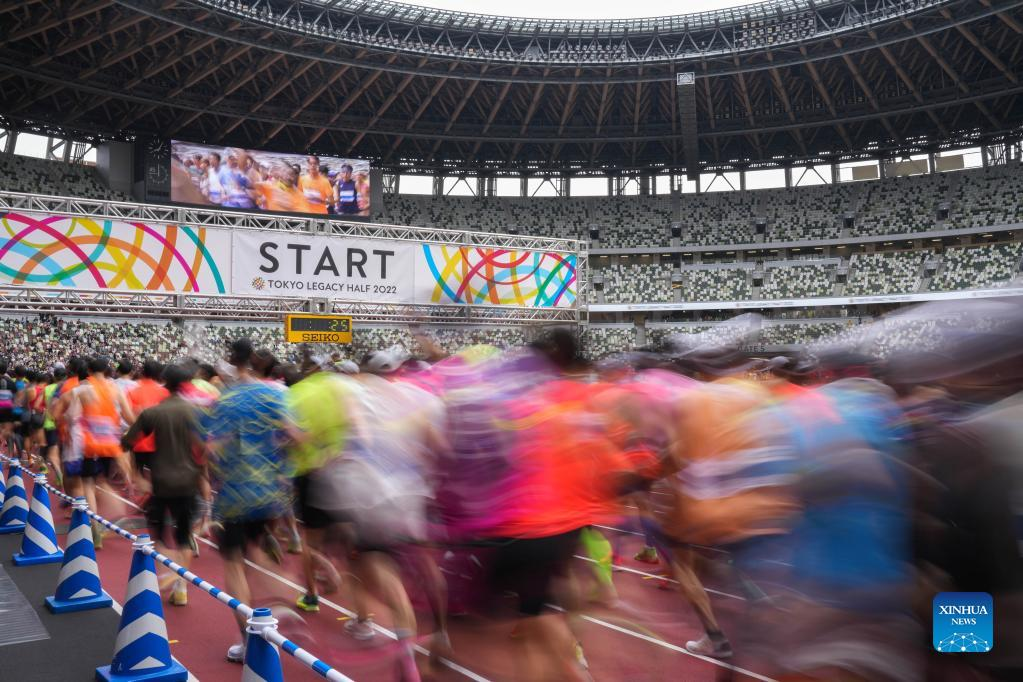 Participants compete during the Tokyo Legacy Half 2022 marathon in Tokyo, Japan, on Oct. 16, 2022. (Xinhua/Zhang Xiaoyu)