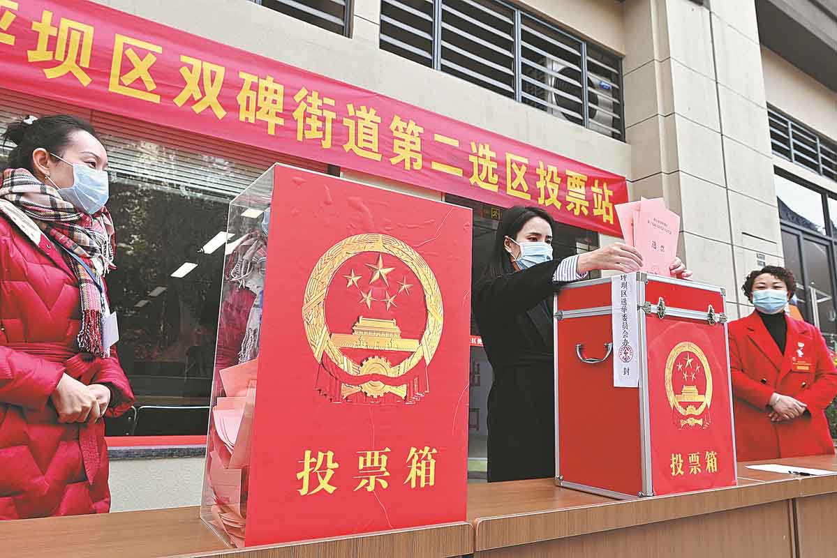 A voter casts her ballot at a polling station in Chongqing's Shapingba district on Dec 10, 2021. Voters in the district reelected deputies to grassroots people's congresses. [Photo provided to China Daily]