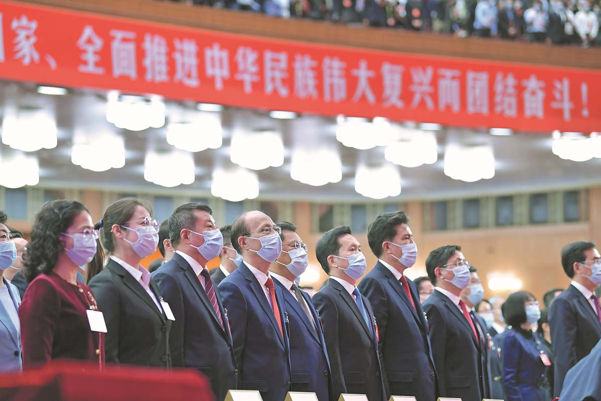 Delegates attend the opening session of the 20th National Congress of the Communist Party of China at the Great Hall of the People in Beijing on Sunday. LI TAO/XINHUA