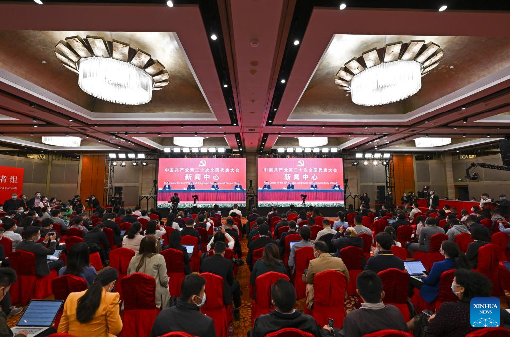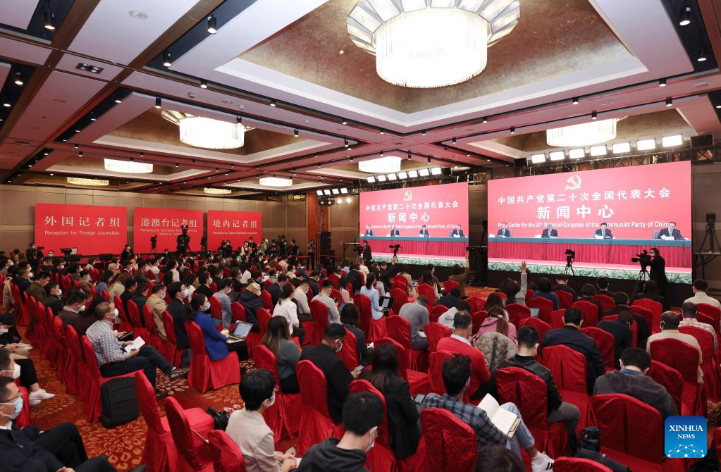 Journalists attend a press conference via video link on the sidelines of the ongoing 20th National Congress of the Communist Party of China (CPC) in Beijing, capital of China, Oct. 17, 2022. (Xinhua/Yin Gang)