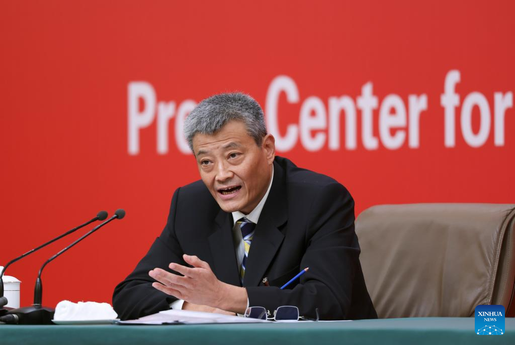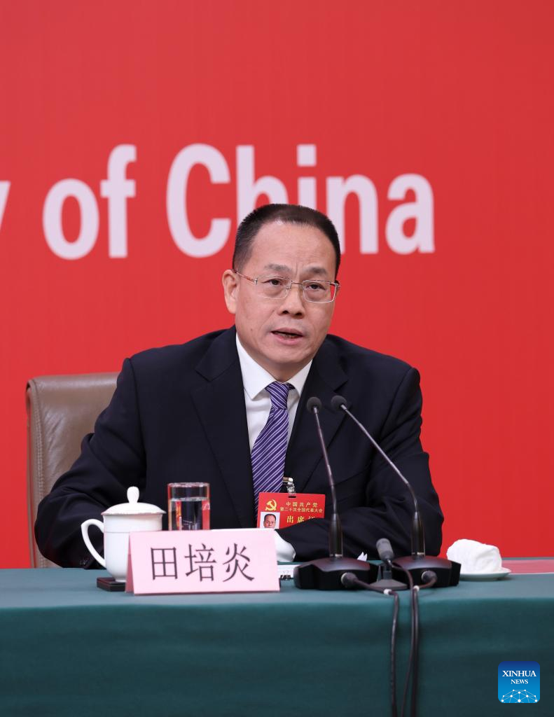 Tian Peiyan, deputy head of the Policy Research Office of the Communist Party of China (CPC) Central Committee, speaks at a press conference on the sidelines of the ongoing 20th CPC National Congress in Beijing, capital of China, Oct. 17, 2022. (Xinhua/Zhang Yuwei)