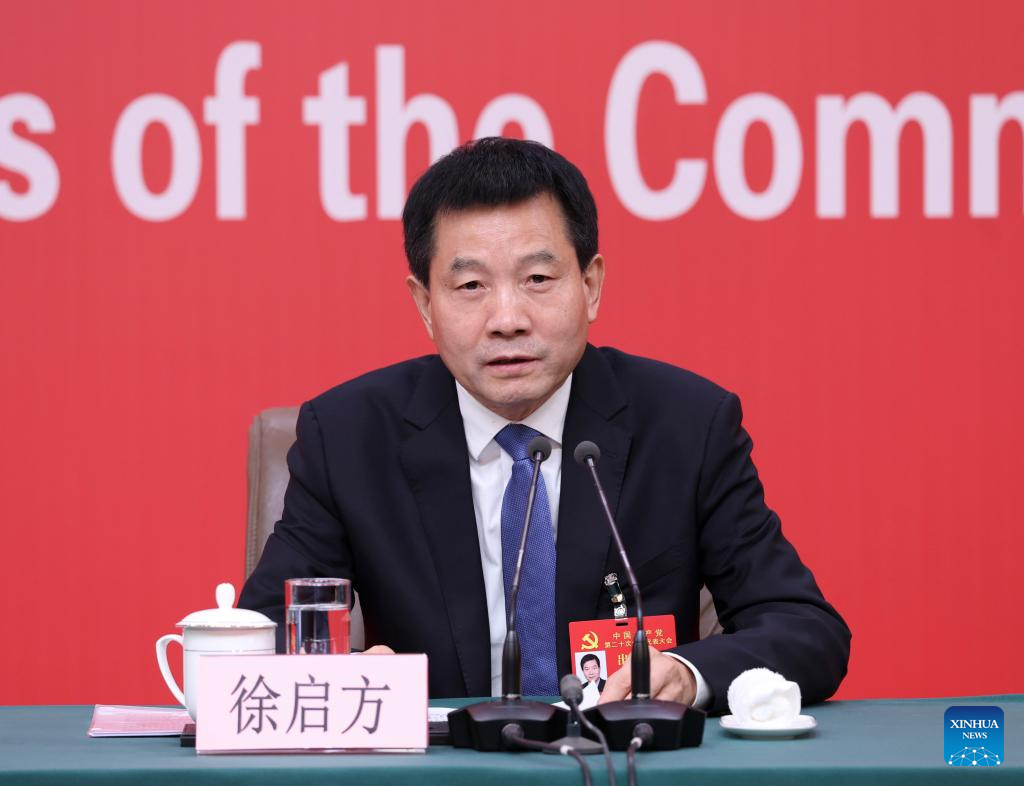 Xu Qifang, deputy head of the Organization Department of the Communist Party of China (CPC) Central Committee, speaks at a press conference on the sidelines of the ongoing 20th CPC National Congress in Beijing, capital of China, Oct. 17, 2022. (Xinhua/Zhang Yuwei)