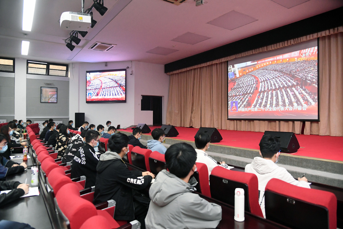 Students at Beijing Jiaotong University gather to watch the opening of the 20th CPC National Congress on Oct 16, 2022. [Photo/Xinhua]