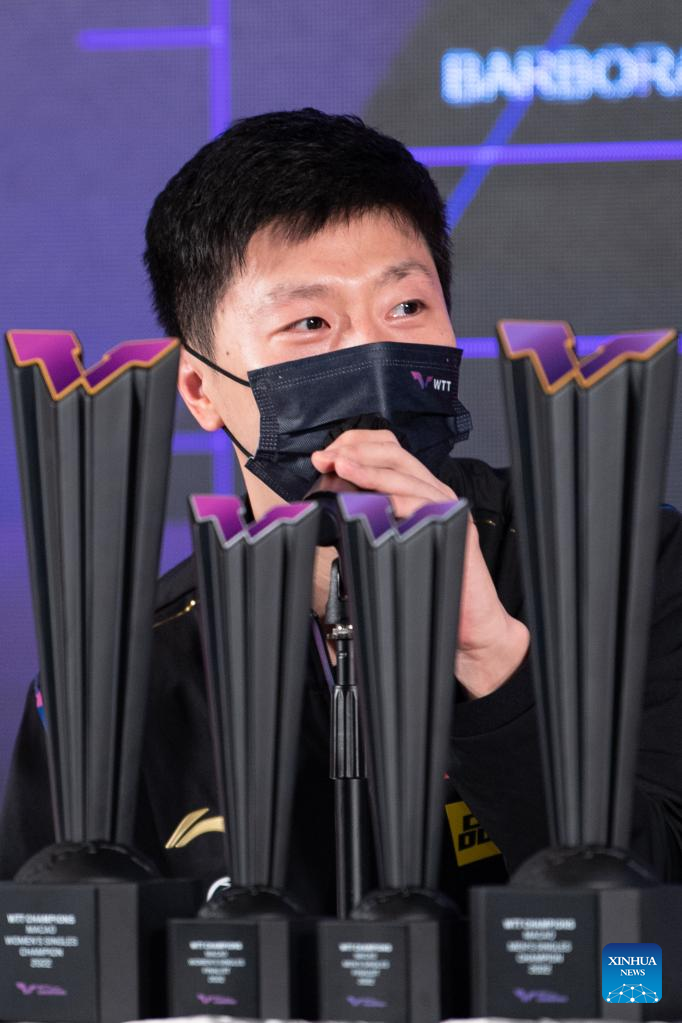 Ma Long of China speaks during the drawing ceremony of WTT Champions Macao 2022 in Macao, south China, Oct. 18, 2022. (Xinhua/Cheong Kam Ka)