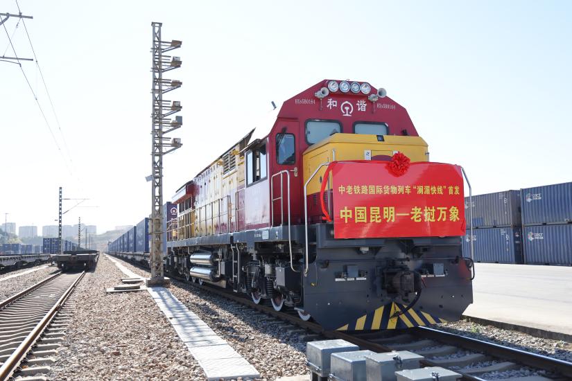 The Lancang-Mekong Express starts its first trip from Kunming in Yunnan province to Laos, the capital of Vientiane, on Jan 10, 2022. [Photo by Yao Wei/for chinadaily.com.cn]