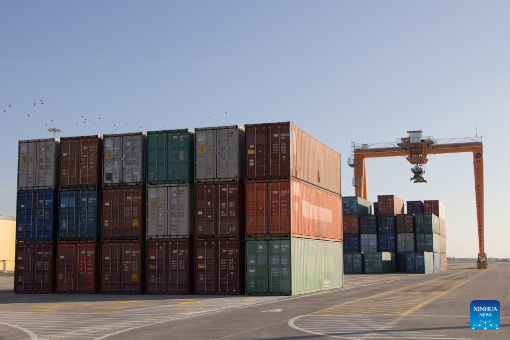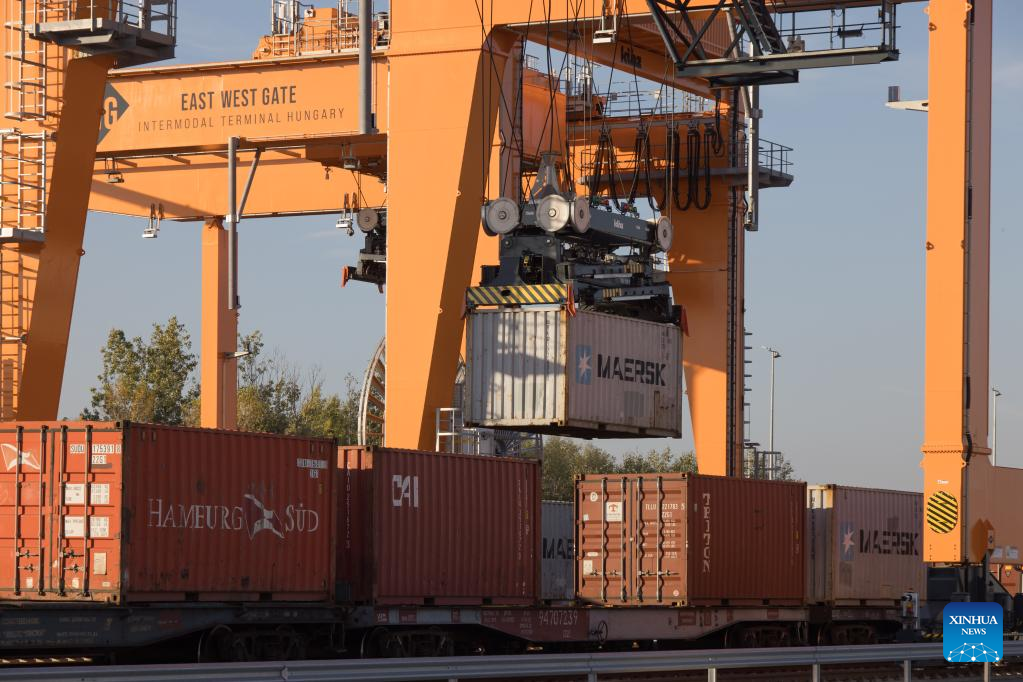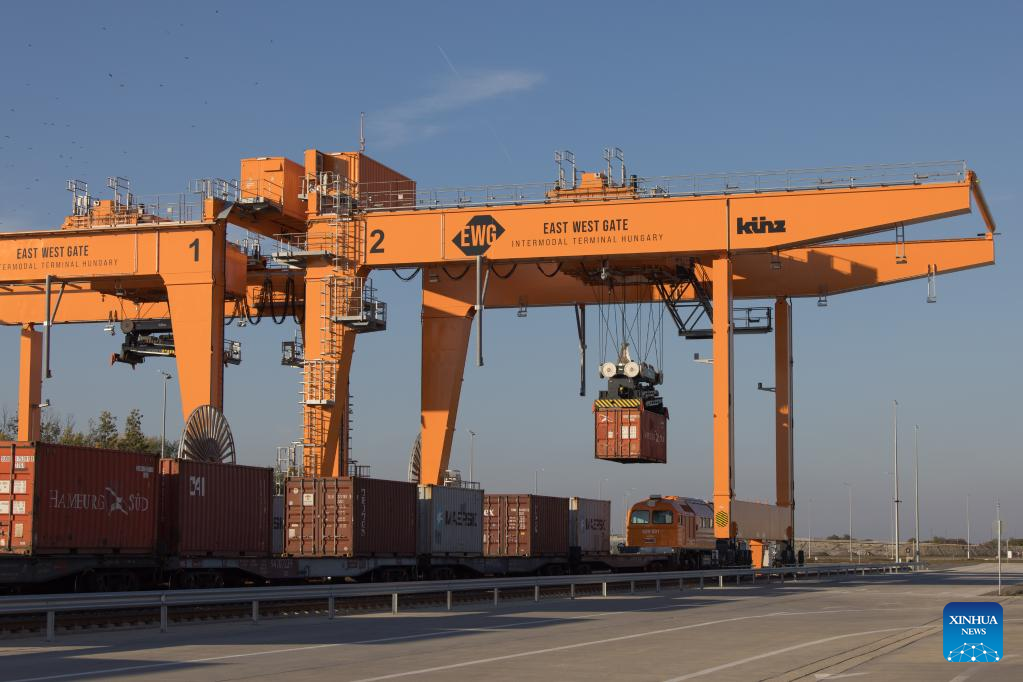 FENYESLITKE, Hungary, Oct. 18 (Xinhua) -- Europe's first land-based intermodal logistics terminal using 5G technology opened near the village of Fenyeslitke in eastern Hungary on Tuesday.