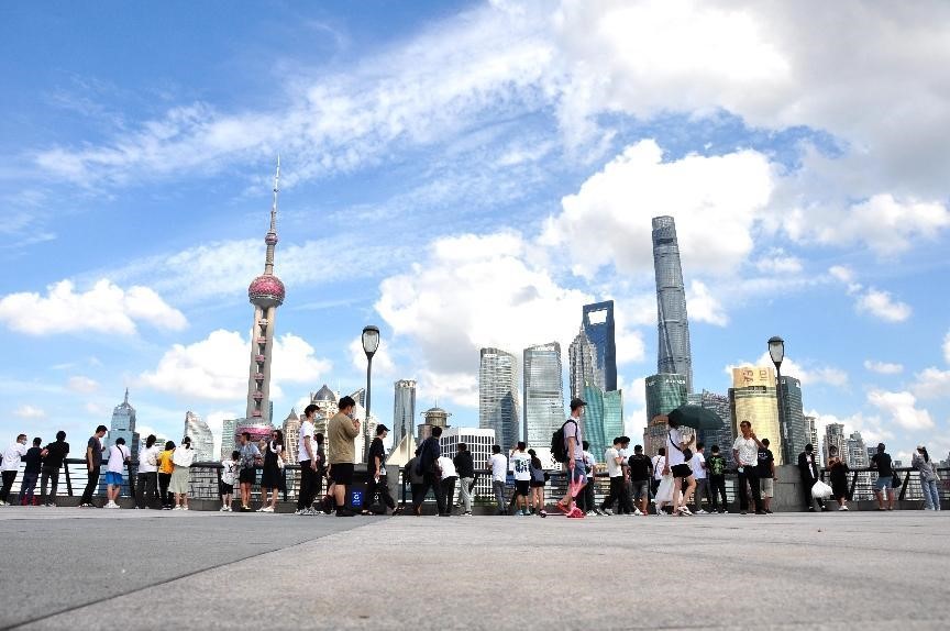 Tourists visit the Bund in Shanghai, Sept. 21, 2022. (People’s Daily Online/Wang Gang)