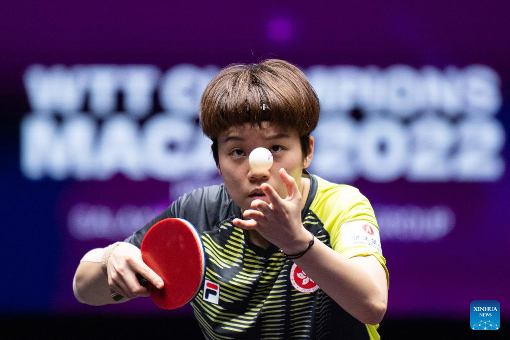 Doo Hoi Kem of China's Hong Kong serves during the women's singles round of 32 match against Cheng I-Ching of Chinese Taipei at the WTT Champions Macao 2022 in Macao, south China, Oct. 19, 2022. (Xinhua/Cheong Kam Ka)
