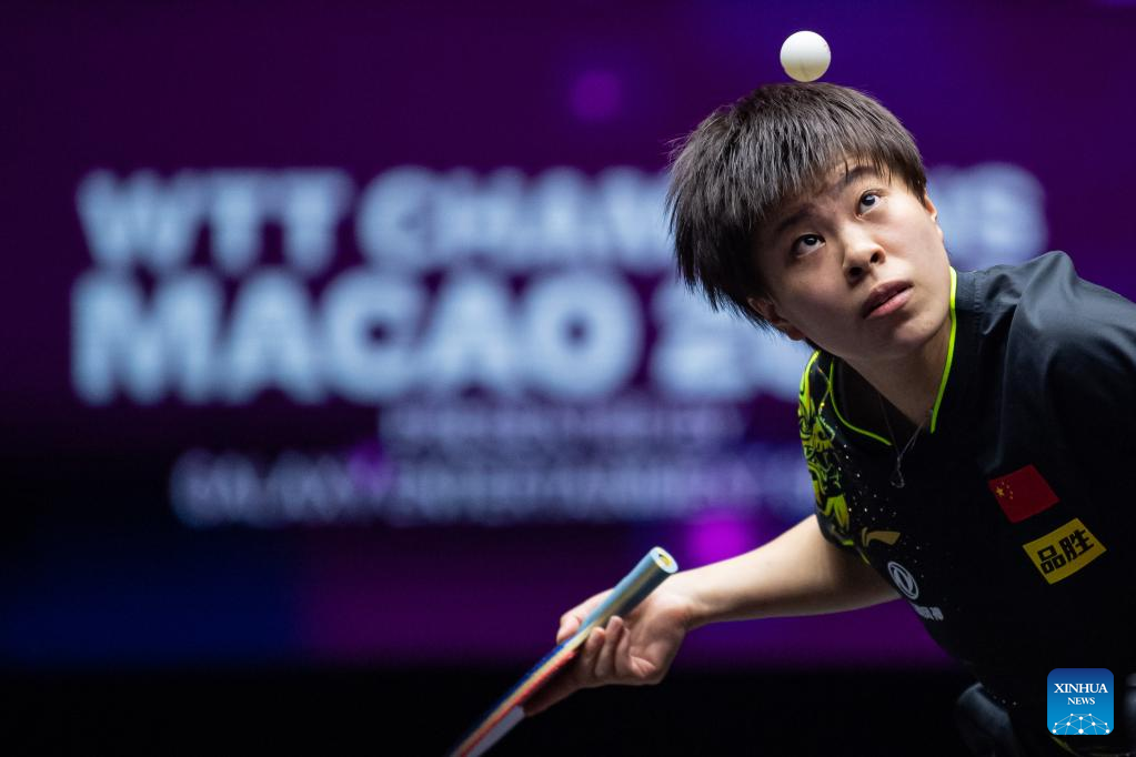 Wang Yidi of China serves during the women's singles round of 32 match against Hana Goda of Egypt at the WTT Champions Macao 2022 in Macao, south China, Oct. 19, 2022. (Xinhua/Cheong Kam Ka)