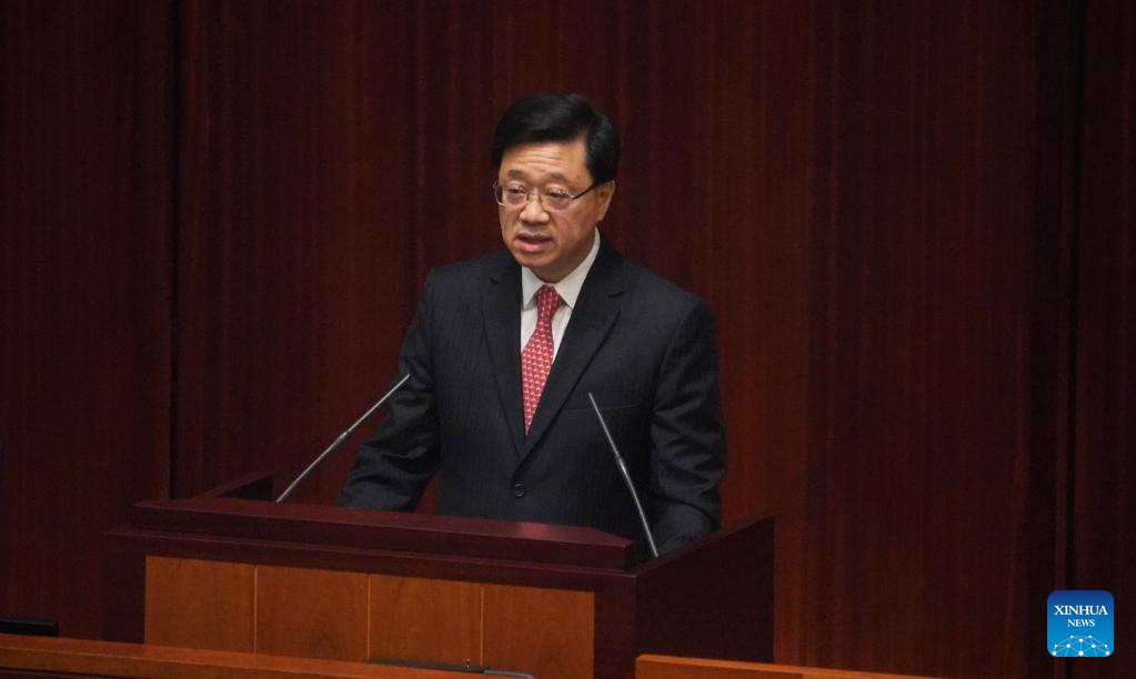 HONG KONG, Oct. 19 (Xinhua) -- John Lee, chief executive of the Hong Kong Special Administrative Region (HKSAR), delivered on Wednesday his first policy address to the HKSAR Legislative Council since taking office.