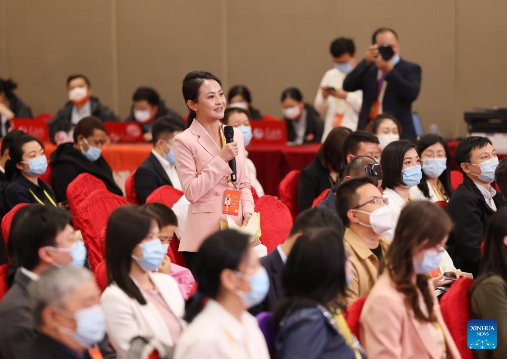 A journalist asks a question via video link during the fourth group interview hosted by the press center for the 20th National Congress of the Communist Party of China (CPC) in Beijing, capital of China, Oct. 19, 2022. During the interview, the spokespersons for delegations from Chongqing, Sichuan, Guizhou, Yunnan, Tibet, Shaanxi and Gansu to the 20th CPC National Congress introduced the delegations' study and discussion on the report to the 20th CPC National Congress, and answered questions from journalists. (Xinhua/Yin Gang)