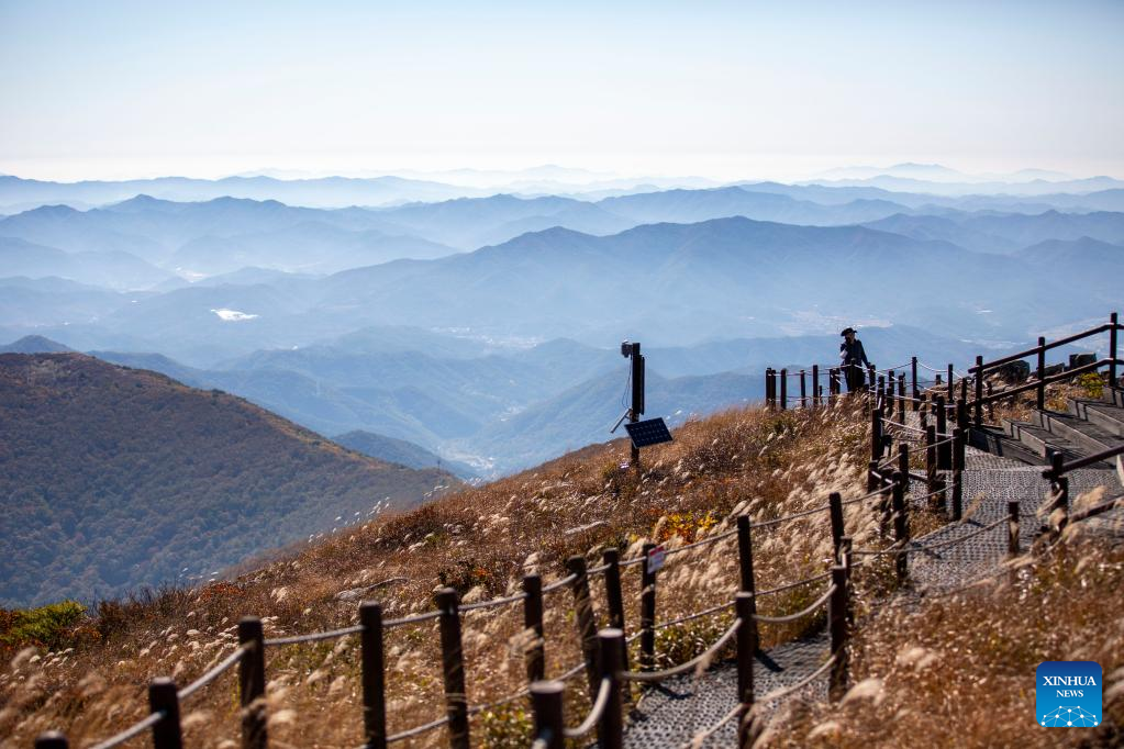A tourist visits Mount Mudeung in Gwangju, South Korea, Oct. 20, 2022. (Xinhua/Wang Yiliang)