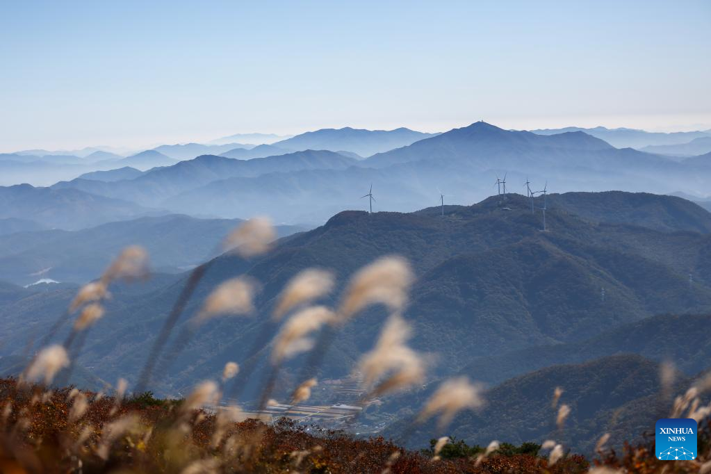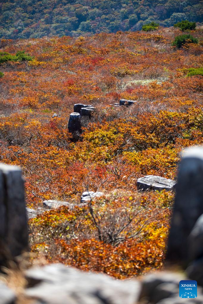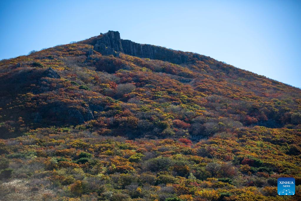 This photo taken on Oct. 20, 2022 shows the autumn scenery of Mount Mudeung in Gwangju, South Korea. (Xinhua/Wang Yiliang)
