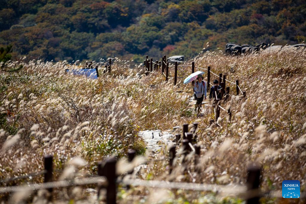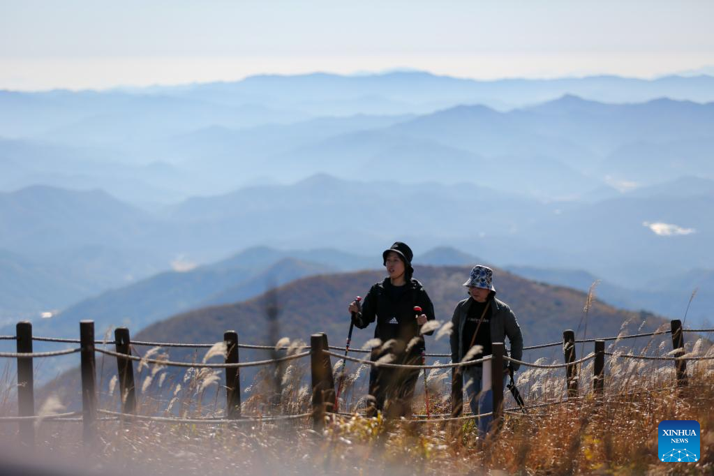 Tourists visit Mount Mudeung in Gwangju, South Korea, Oct. 20, 2022. (Xinhua/Wang Yiliang)