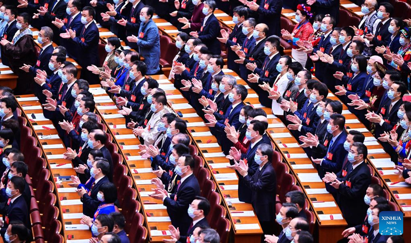 Delegates attend the closing session of the 20th National Congress of the Communist Party of China (CPC) at the Great Hall of the People in Beijing, capital of China, Oct. 22, 2022. (Xinhua/Yue Yuewei)